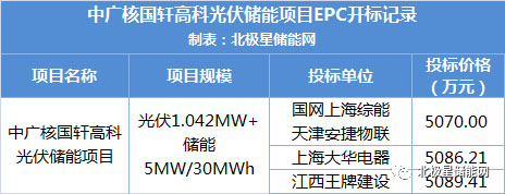 11月25日,中廣核國(guó)軒高科儲(chǔ)能光伏項(xiàng)目設(shè)計(jì)采購施工工程總承包中標(biāo)候選人公示,第一中標(biāo)候選人為國(guó)網(wǎng)上海綜合能源服務(wù)有限公司與天津安捷物聯(lián)科技股份有限公司的聯(lián)合體,投標(biāo)價(jià)格約為5070萬元。此外第二中標(biāo)候選人為上海大華電器設(shè)備有限公司,第三中標(biāo)候選人為江西王牌建設(shè)工程集團(tuán)有限公司。