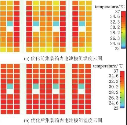 圖11 優(yōu)化前后電池溫度分布云圖