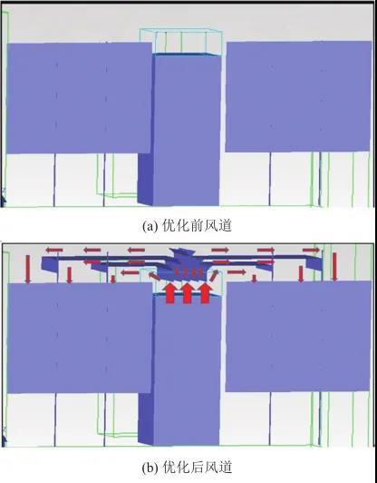 圖10 送風(fēng)風(fēng)道優(yōu)化前后模型