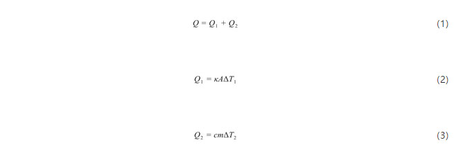 式中,Q為電池發(fā)熱量;Q1為電池散失至環(huán)境熱量;Q2為電池自身溫升熱量;為電池至環(huán)境傳熱系數(shù);A為傳熱面積;c為電池比熱容;m為電池重量;△T1為電池至環(huán)境溫差;△T2為電池溫升。