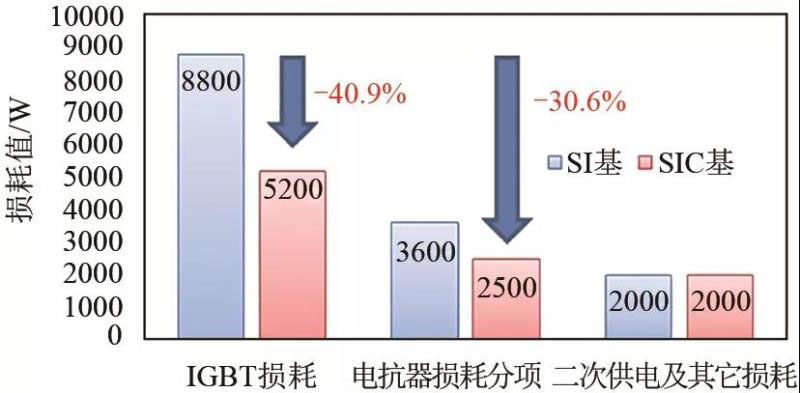 圖5 800 kW PCS SI基與SIC基模塊損耗對比