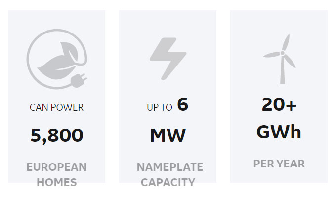 單機最高6.0MW,單臺機組可供5800個歐洲家庭用電,年發(fā)電20+GWh