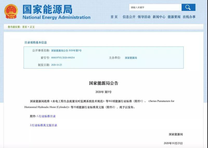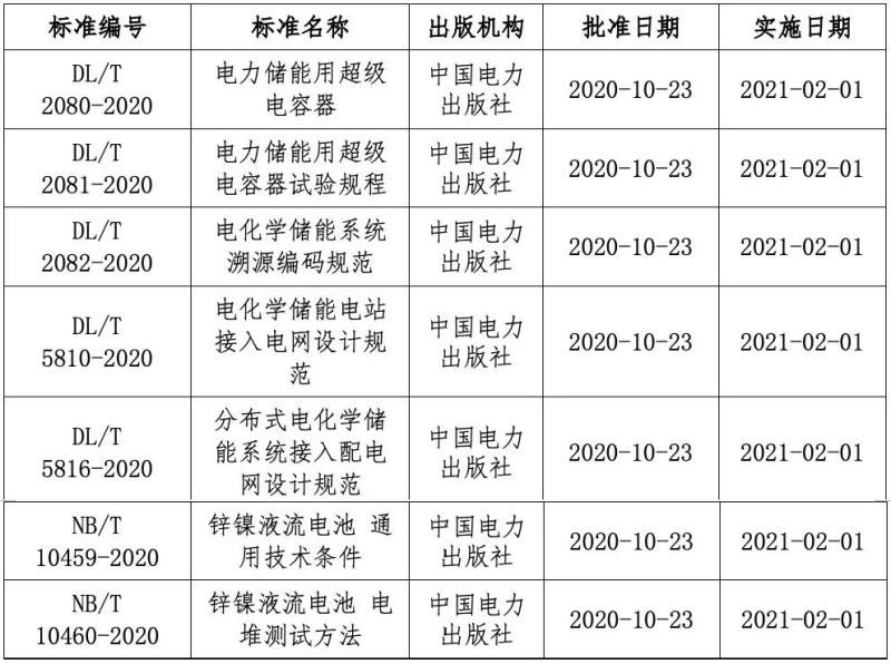 中國儲能網(wǎng)訊:11月27日,國家能源局發(fā)布2020年第5號公告,批準了502項能源行業(yè)標準,其中儲能部分包含電力儲能用超級電容器、電化學儲能系統(tǒng)溯源編碼規(guī)范、電化學儲能電站接入電網(wǎng)設計規(guī)范、分布式電化學儲能系統(tǒng)接入配電網(wǎng)設計規(guī)范等7項標準。新標準將于2021年2月1日開始實施。