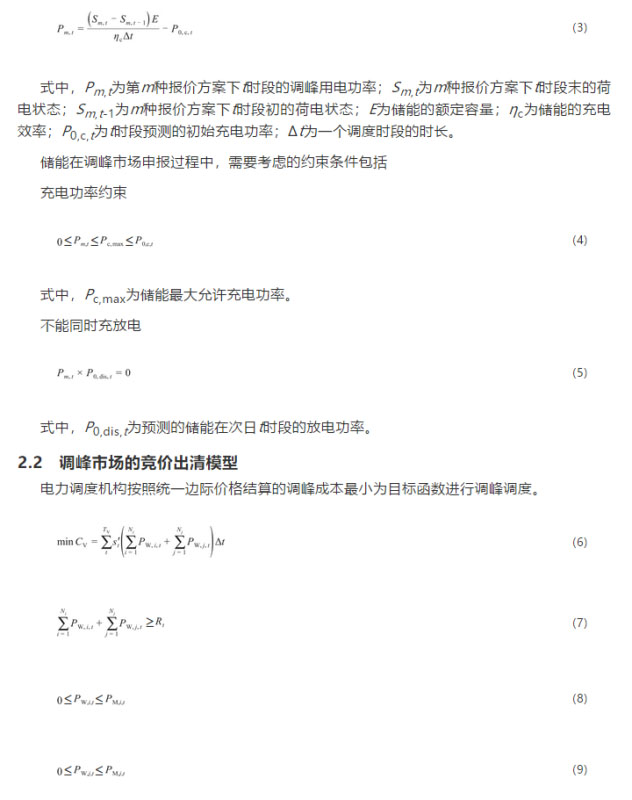 上述文獻為儲能參與調峰調頻輔助服務提供了良好的技術支持和經(jīng)濟決策參考,但很少有考慮發(fā)電側儲能作為獨立主體參與輔助服務市場的優(yōu)化控制和效益的研究。能源局在《關于促進電儲能參與“三北”地區(qū)電力輔助服務補償(市場)機制試點工作的通知》提出,發(fā)電側電儲能設施可作為獨立主體參與輔助服務市場交易。為此,有必要進行儲能獨立參與輔助服務市場的研究,為西北電網(wǎng)完善儲能參與電力調峰的支持政策和市場機制提供參考。本文首先分析了發(fā)電側電儲能獨立參與調峰輔助服務市場的具體模式以及實施流程,并構建了調峰市場的競價出清模型,以及儲能的實時優(yōu)化調度模型,基于西北某電網(wǎng)的實際運行數(shù)據(jù)對模型進行了模擬分析,評估儲能獨立參與調峰市場后對電網(wǎng)調峰調度成本和自身經(jīng)濟效益的影響。