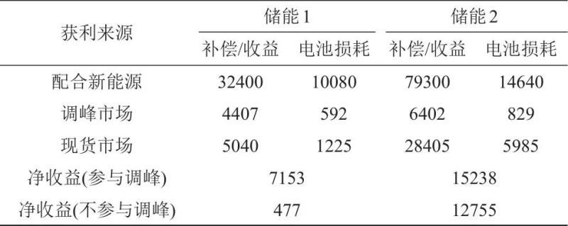 在本算例中,考慮每日的折算投資成本,儲能參與調峰市場和不參與調峰市場的情況下,在一天的調度周期內的具體獲利情況見表8??梢?,儲能通過參與調峰市場,增加了自身的電力存儲,并在現(xiàn)貨市場中實現(xiàn)套利,進而提高了自身的效益。