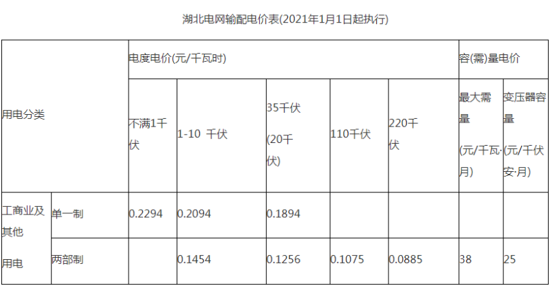 《湖北電網(wǎng)2020-2022年輸配電價(jià)和銷(xiāo)售電價(jià)有關(guān)事項(xiàng)的通知》