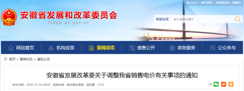 《安徽省發(fā)展改革委關(guān)于調(diào)整我省銷(xiāo)售電價(jià)有關(guān)事項(xiàng)的通知》
