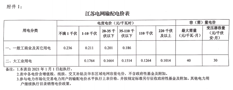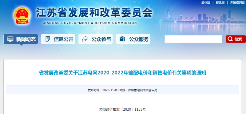 《關(guān)于江蘇電網(wǎng)2020-2022年輸配電價(jià)和銷(xiāo)售電價(jià)有關(guān)事項(xiàng)的通知》