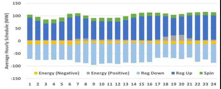 CAISO早在2012年就開始發(fā)展和貫徹儲(chǔ)能參與市場(chǎng)模式以推動(dòng)儲(chǔ)能與其他資源公平競(jìng)爭(zhēng)并獲得合理補(bǔ)償。CAISO主要通過(guò)非發(fā)電資源模式(NGR,Non-Generator Resource),允許儲(chǔ)能資源參與雙邊容量市場(chǎng),電能量市場(chǎng)和輔助服務(wù)市場(chǎng)。NGR的定義是 “具有連續(xù)運(yùn)行區(qū)間,既可以發(fā)電又可以耗電的資源” 。現(xiàn)代電池技術(shù)和儲(chǔ)能控制系統(tǒng)已經(jīng)可以支持從放電到充電的近實(shí)時(shí)切換,可以完成精確快速的響應(yīng),但是電池儲(chǔ)能仍然受到充放電量的限制,這也是電池特性所決定的。在CAISO,NGR可以選擇調(diào)頻能源管理功能 (REM,Regulation Energy Management),在這種選擇下,NGR能夠更有效地參與日前調(diào)頻市場(chǎng),但不能同時(shí)參與電能量市場(chǎng)和運(yùn)行備用市場(chǎng)。