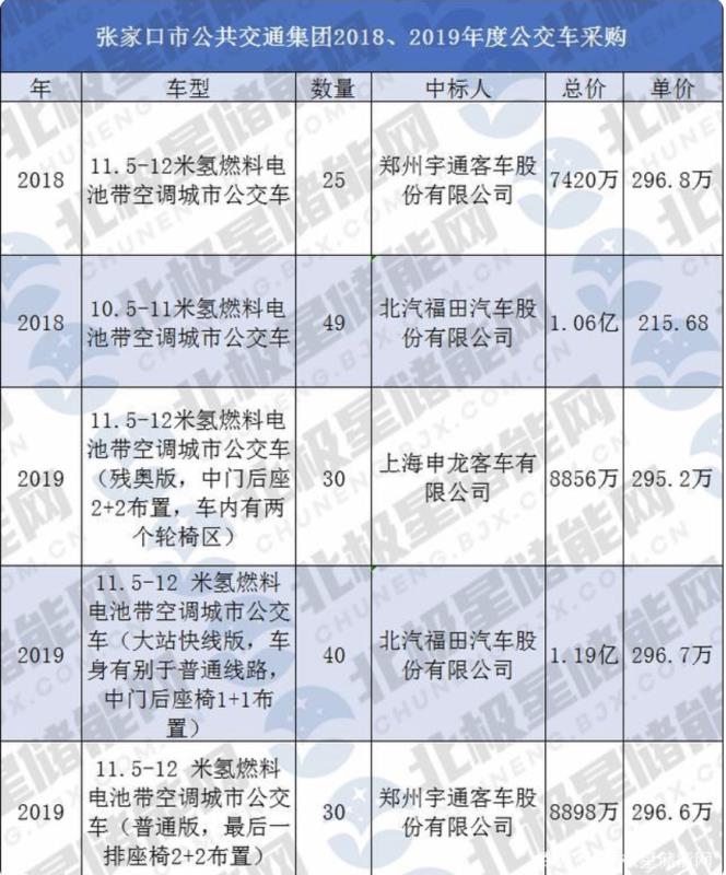 北汽福田和鄭州宇通依然是中標(biāo)之二,兩家公司已經(jīng)連續(xù)中標(biāo)張家口市2018、2019兩個(gè)年度的氫燃料電池公交車(chē)。兩家公司去年和前年中標(biāo)的11.5-12米規(guī)格氫燃料公交車(chē)都是約296萬(wàn)元,今年相較略有小降,詳見(jiàn)下表。