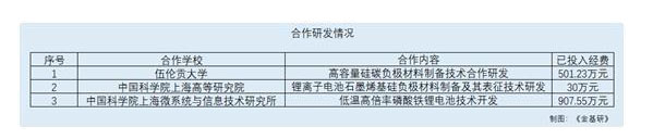 與中國(guó)科學(xué)院上海高等研究院合作鋰離子電池石墨烯基硅負(fù)極材料制備及其表征技術(shù)研發(fā),目前為開發(fā)階段,已投入經(jīng)費(fèi)30萬(wàn)元。
