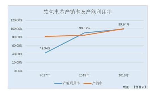 同期,派能科技的軟包電芯產(chǎn)銷率分別為81.63%、84.77%、100.43%。