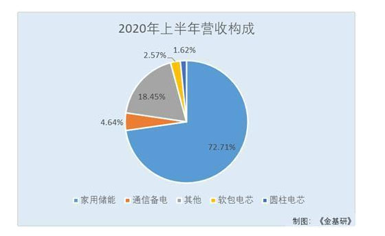 2020年上半年,派能科技來(lái)源于家用儲(chǔ)能、通信備電、其他、軟包電芯及圓柱電芯的收入分別為35,935.67萬(wàn)元、2,292.59萬(wàn)元、9,118.52萬(wàn)元、1,272.45萬(wàn)元、802.48萬(wàn)元,占同期主營(yíng)業(yè)務(wù)收入的比例分別為72.71%、4.64%、18.45%、2.57%、1.62%。