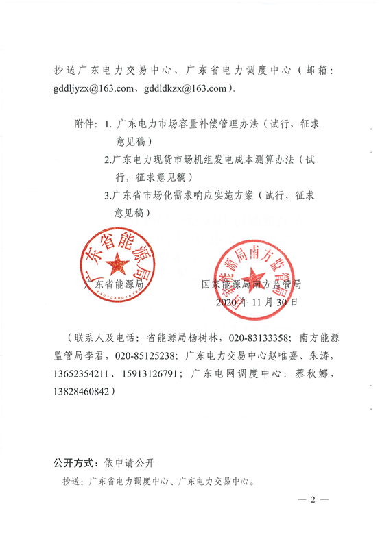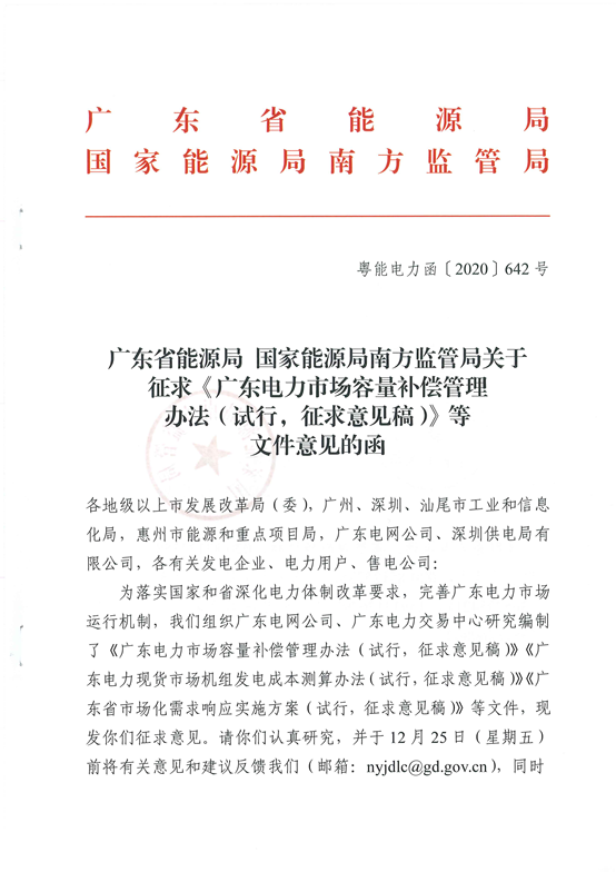 11月30日,廣東省能源局、國(guó)家能源局南方監(jiān)管局發(fā)布《關(guān)于征求《廣東電力市場(chǎng)容量補(bǔ)償管理辦法(試行,征求意見稿)》等文件意見的函》。