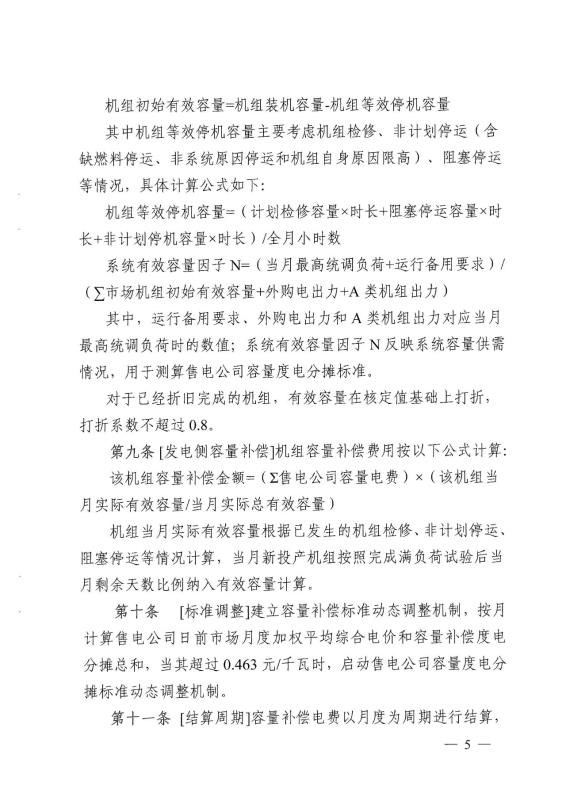 4.電費(fèi)收付:各市場(chǎng)主體的容量補(bǔ)償電費(fèi)保持與電網(wǎng)企業(yè)的電費(fèi)結(jié)算支付方式不變。