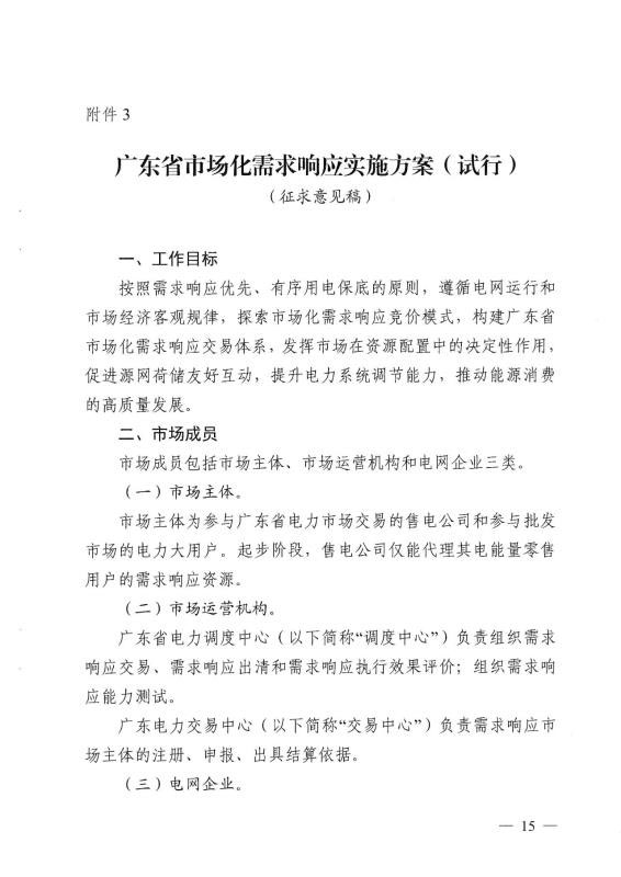 《廣東省市場(chǎng)化需求響應(yīng)實(shí)施方案(試行,征求意見稿)》要點(diǎn)包括: