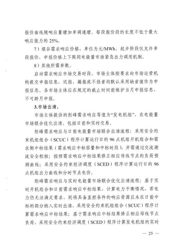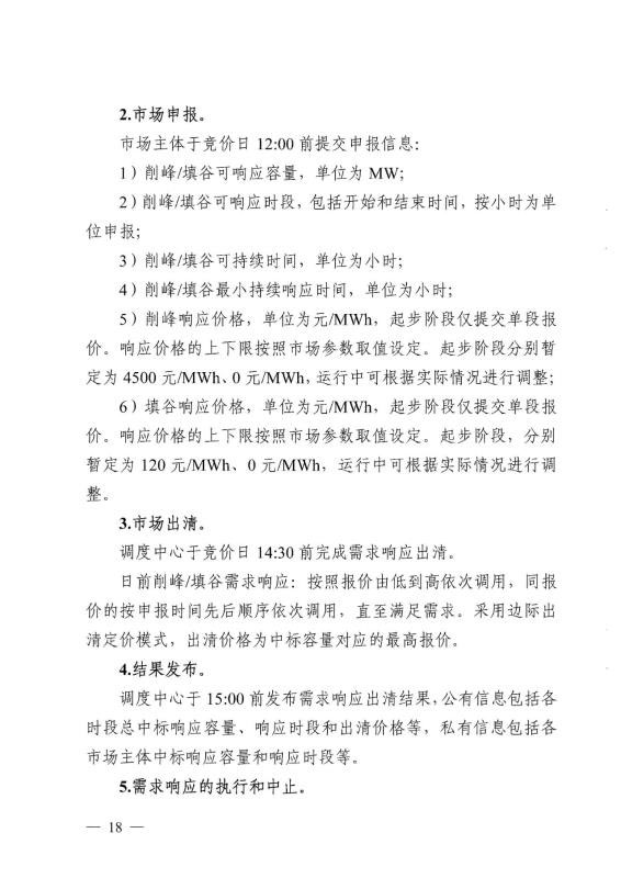 4.削峰響應(yīng)價(jià)格:?jiǎn)挝粸樵?MWh,起步階段僅提交單段報(bào)價(jià)。響應(yīng)價(jià)格的上下限按照市場(chǎng)參數(shù)取值設(shè)定。起步階段分別暫定為4500元/MWh、0元/MWh,運(yùn)行中可根據(jù)實(shí)際情況進(jìn)行調(diào)整;