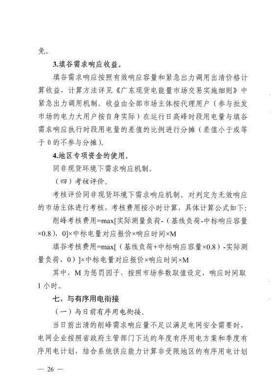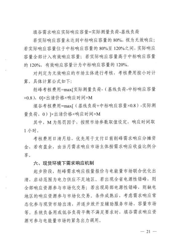 填谷考核費(fèi)用=max【(基線負(fù)荷+中標(biāo)響應(yīng)容量×0.8)-實(shí)際測(cè)量負(fù)荷,0)】×出清價(jià)格×響應(yīng)時(shí)間×M