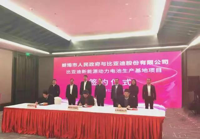 12月21日下午,安徽省蚌埠市與比亞迪就新能源動力電池項目舉行簽約儀式。