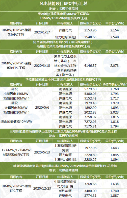 2020年風(fēng)電儲能項(xiàng)目中標(biāo)詳情如下。