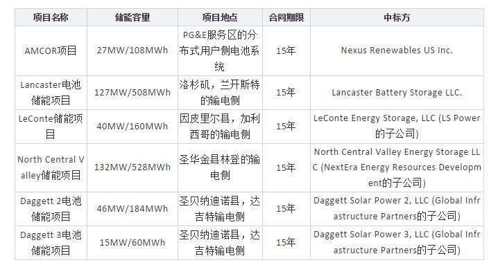 CPUC最新批準(zhǔn)的387MW/1548MWh儲能項(xiàng)目基本信息如下表所示: