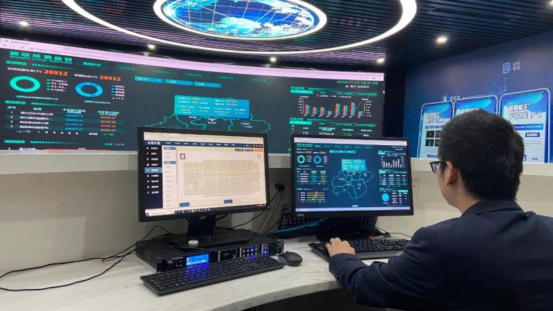 供電公司工作人員在嘉興市能源大數(shù)據(jù)中心平臺(tái)查看區(qū)域能耗情況。