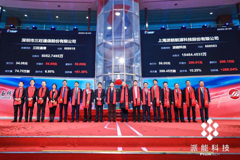中國儲能網(wǎng)訊:12月30日,上海派能能源科技股份有限公司(以下簡稱“派能科技”)正式在上海證券交易所科創(chuàng)板掛牌上市,股票簡稱“派能科技”,股票代碼“688063”,發(fā)行價56元/股。這是派能科技發(fā)展史上的一個重要里程碑。截至今日上午10:30分,派能科技漲幅為268.75%,市值達(dá)333.8億。
