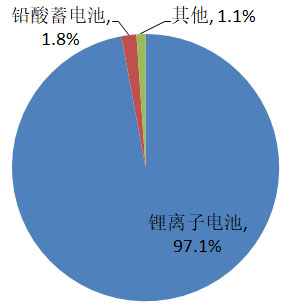 圖2 2020年我國(guó)新增投運(yùn)電化學(xué)儲(chǔ)能項(xiàng)目裝機(jī)容量占比