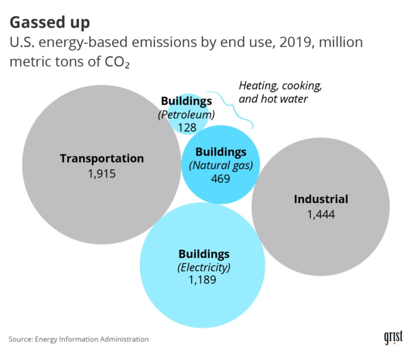 美國能源相關(guān)排放中,建筑物排放占比僅次于交通領(lǐng)域