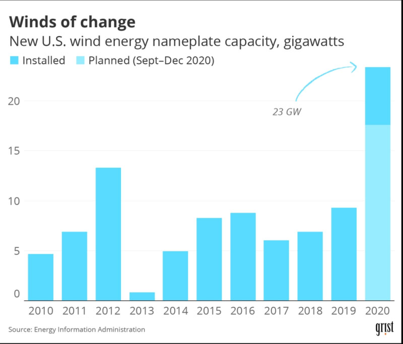美國2020年新增風(fēng)力發(fā)電23GW