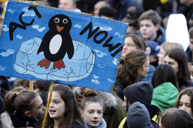 年輕人在柏林集會,要求就氣候變化采取行動。有12個大城市表示要從化石能源中剝離出來(Michael Sohn / Associated Press)