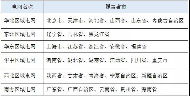 對應(yīng)區(qū)域電網(wǎng)所轄省市如下表所示: