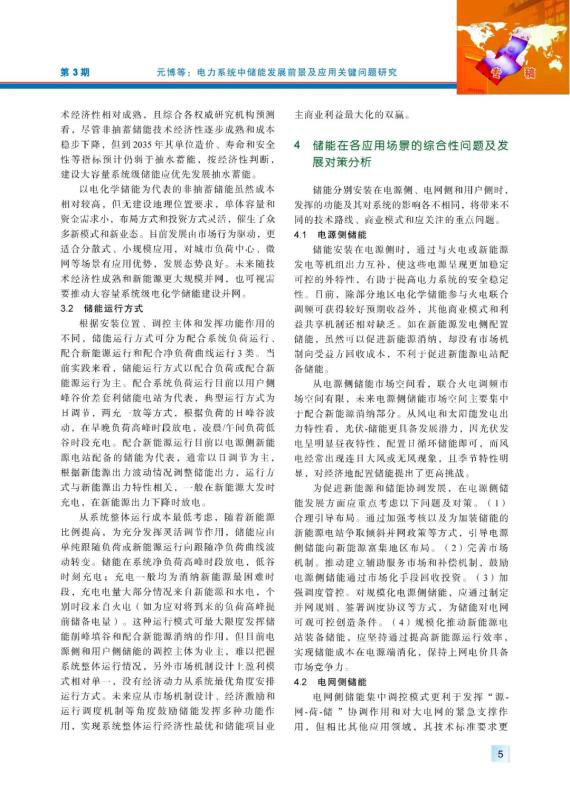 摘要:隨著儲(chǔ)能技術(shù)日趨成熟和成本快速下降,中國(guó)儲(chǔ)能產(chǎn)業(yè)快速發(fā)展,逐步從研發(fā)示范向商業(yè)化階段過(guò)渡,但整體來(lái)看儲(chǔ)能產(chǎn)業(yè)還處于發(fā)展初期階段,仍存在發(fā)展前景不明晰、技術(shù)標(biāo)準(zhǔn)不完善、商業(yè)模式和市場(chǎng)機(jī)制不清晰等問題。從發(fā)展規(guī)模、技術(shù)經(jīng)濟(jì)性、產(chǎn)業(yè)鏈等方面總結(jié)中國(guó)儲(chǔ)能發(fā)展現(xiàn)狀,基于“源-網(wǎng)-荷-儲(chǔ)”協(xié)調(diào)規(guī)劃理論,從宏觀層面展望新能源大規(guī)模發(fā)展形勢(shì)下中長(zhǎng)期儲(chǔ)能發(fā)展前景,研究?jī)?chǔ)能在電力系統(tǒng)中的合理運(yùn)行方式、與新能源消納關(guān)系等重要問題;從微觀層面對(duì)儲(chǔ)能在電源側(cè)、電網(wǎng)側(cè)和用戶側(cè)等場(chǎng)景的應(yīng)用關(guān)鍵問題及發(fā)展對(duì)策進(jìn)行分析,并提出相關(guān)建議,為推動(dòng)中國(guó)儲(chǔ)能產(chǎn)業(yè)健康發(fā)展提供參考。