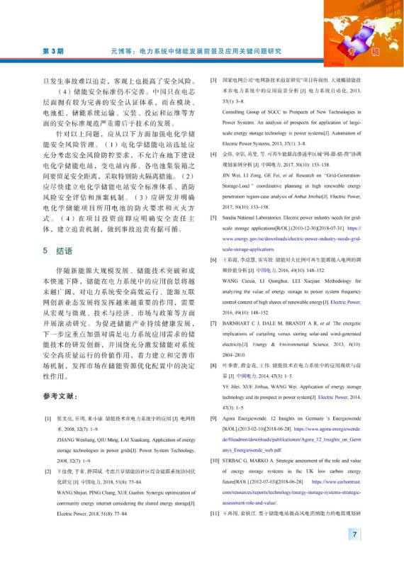 元博, 張運(yùn)洲, 魯剛, 等. 電力系統(tǒng)中儲(chǔ)能發(fā)展前景及應(yīng)用關(guān)鍵問題研究[J]. 中國(guó)電力, 2019, 52(3): 1-8.