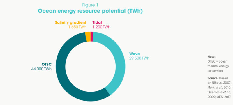 中國儲(chǔ)能網(wǎng)訊:根據(jù)國際可再生能源署(IRENA)的數(shù)據(jù),所有海洋能源技術(shù)的發(fā)電潛力總和為45,000-130,000太瓦時(shí)(TWh),這意味著海洋能源可以滿足目前全球電力需求的兩倍以上。