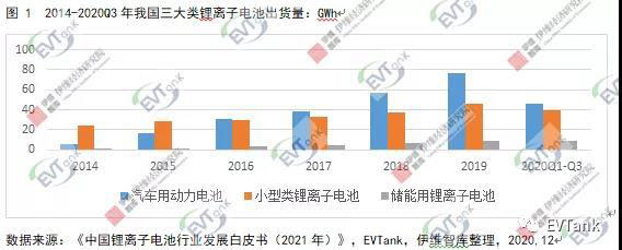 按應用領域分類,鋰離子電池主要分為汽車用動力電池(EV Lib)、小型類鋰離子電池(Small Lib)和儲能用鋰離子電池(ESS Lib)三大類,其中,汽車用動力電池出貨量主要受新能源汽車銷量的影響,近年來各國對環(huán)保的重視驅動新能源汽車滲透率逐步提高,雖然上半年受疫情影響,汽車用動力電池出貨量同比下滑45.8%,但是下半年新能源汽車產(chǎn)銷量的單月同比大幅增長,截止到2020年11月,我國汽車用動力電池累計出貨量62.5Gwh,累計同比下降幅度已經(jīng)收窄到7.0%。小型類鋰離子電池主要用于手機、電腦、電動工具、電動二輪車及新興消費應用等領域,2020Q1-Q3,在5G手機、電動工具和電動兩輪車用電池的帶動下,我國小型類鋰離子電池出貨量達到39.7Gwh,同比增長16.5%;儲能用鋰離子電池仍處于市場導入階段,出貨量較少,但增長速度較快,在基站建設、海外儲能和國內發(fā)電側儲能項目的帶動下,2020Q1-Q3我國儲能電池出貨量為9.1GWh,已經(jīng)超過去年全年水平。