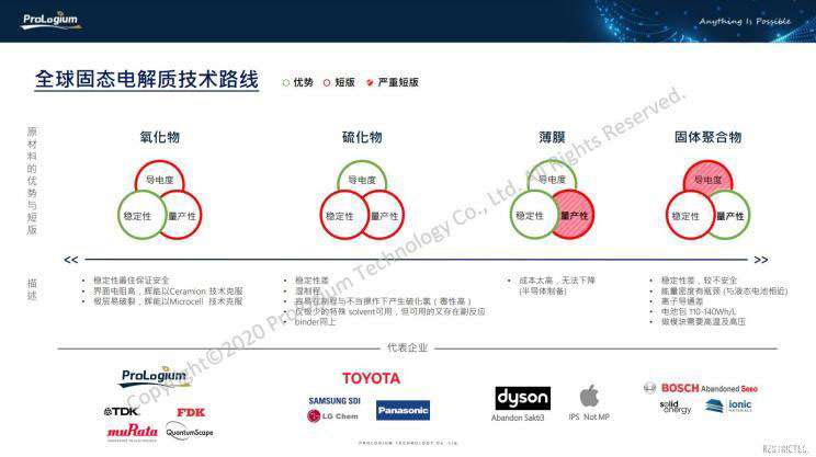 現(xiàn)階段,固態(tài)電池再次進(jìn)入競(jìng)爭(zhēng)主賽道。為何“回”到固態(tài)電池?輝能科技方面表示,隨著固態(tài)成組技術(shù)、主動(dòng)安全機(jī)制、界面阻抗與電性優(yōu)化等方面的提升,固態(tài)電池各類問題都將得到有效解決。據(jù)悉,目前已經(jīng)在使用或接近商用的固態(tài)電池的電解質(zhì)有:聚合物、硫化物和氧化物三種。其中,氧化物電解質(zhì)性能最優(yōu)。