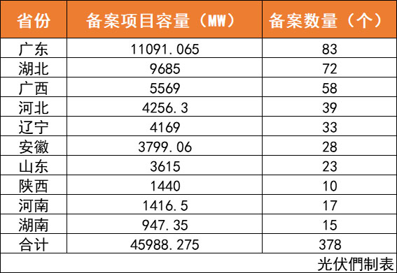 此外,從省份來看,廣東、湖北、廣西、河北、遼寧等省份倍受投資企業(yè)的青睞。其中廣東省以83個項目、11.09GW規(guī)模位列所統(tǒng)計的19省備案數(shù)量及規(guī)模第一。目前,湖北于下半年備案項目已突破過9GW,廣西、河北、遼寧備案超4GW,安徽、山東省項目也已突破3GW。