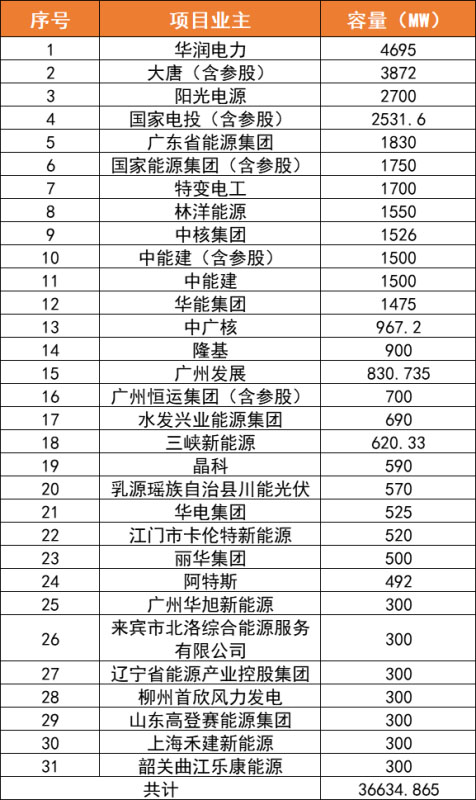 備注:表中僅列出所統(tǒng)計電站項目總容量超300MW的業(yè)主名單;特別強調的是,上述項目來源于項目審批監(jiān)管平臺,因項目名單眾多,難免有疏漏,上述表格不做排名依據(jù),僅供讀者參考。