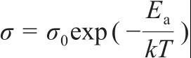 結(jié)合凝膠電解質(zhì)與納米顆粒摻雜改性,Hashmi等將20 %的納米SiO2分散在PMMA中的復合材料浸入1 mol/L NaClO4的碳酸乙烯酯(EC)/碳酸丙烯酯(PC)(1∶1,體積比)的電解液中,得到了室溫電導率為3.4×10-4 S/cm的凝膠電解質(zhì),使用式(4)所描述的處于黏流態(tài)聚合物電解質(zhì)的阿倫尼烏斯模型分析了該體系的離子電導活化能(Ea)。然而不同報道中物理量tNa+、Ea、B數(shù)值的獲取存在測試步驟的參數(shù)差異,因此更適用于同一體系之間變化趨勢的定性分析,難以通過絕對的數(shù)值比較去衡量不同體系的優(yōu)劣。