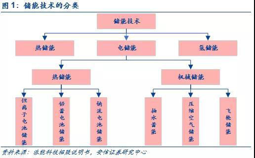 儲能即能量的存儲。根據(jù)能量存儲形式的不同,廣義儲能包括電儲能、熱儲能和氫儲能三類。電儲能是最主要的儲能方式,按照存儲原理的不同又分為電化學儲能和機械儲能兩種技術(shù)類型。其中,電化學儲能是指各種二次電池儲能,主要包括鋰離子電池、鉛蓄電池和鈉硫電池等;機械儲能主要包括抽水蓄能、壓縮空氣儲能和飛輪儲能等。