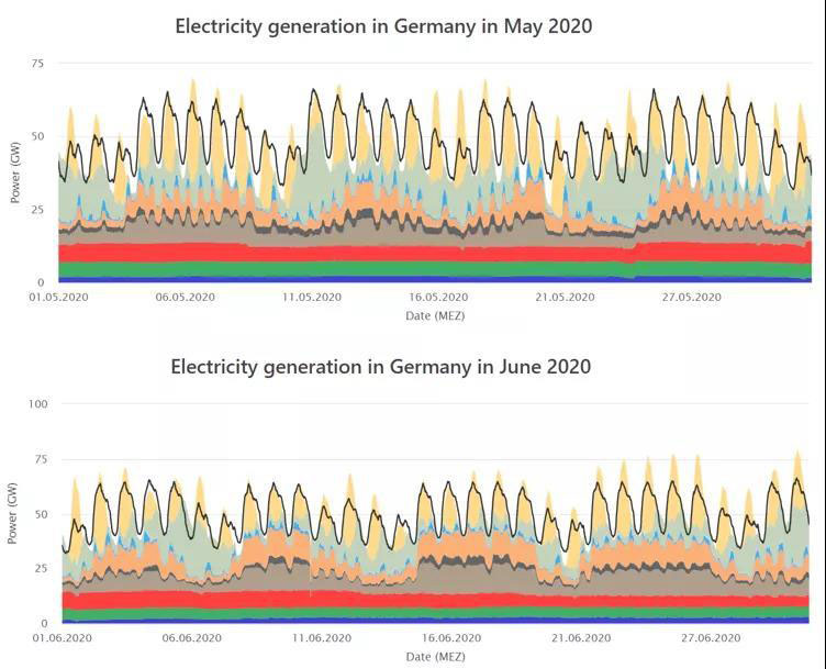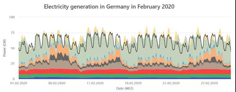 2020年的第一個季度,德國總電力消費量中來自可再生能源的電量占比達到了52%,是第一個完整的季度中可再生能源貢獻了該國超過一半的電力需求。2月甚至創(chuàng)下了單月61.8%的新高。相比之下,2019年第一季度的占比為44%。如此高比例的接入主要與2、3月創(chuàng)紀錄的風電和較高的太陽能發(fā)電,以及新冠病毒大流行造成的總電力需求下降有關(guān)。本文將首先研究展示德國2020年以來各個月電力系統(tǒng)的負荷曲線,然后對德國電力系統(tǒng)能消納如此高比例的可再生能源的原因進行解讀分析。在各國碳中和的大背景下,了解當前德國電力系統(tǒng)電源結(jié)構(gòu),研判其能源轉(zhuǎn)型的過去、現(xiàn)在和未來,將是十分有必要的。