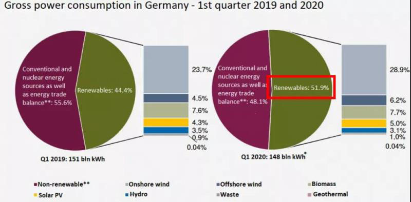 20年前,國家電網(wǎng)部分電力專家認為電網(wǎng)中可再生能源占比超過百分之十,由于其波動性,電網(wǎng)就很大可能會崩潰?,F(xiàn)在,德國已經(jīng)證明了一季度內(nèi)52%的可再生能源供應也是安全可靠的,且這是在完全沒有儲能裝置的情況下做到的。隨著各類電力系統(tǒng)靈活性資源的挖掘和支撐,未來德國電網(wǎng)80%甚至100%可再生能源電力系統(tǒng)指日可待。