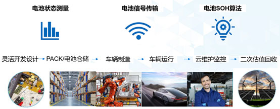 在電池中心內(nèi)部,百人會和ADI發(fā)起了“基于無線傳輸與云服務的汽車鋰電池壽命及健康狀態(tài)監(jiān)測”的項目,該項目基于無線電池管理系統(tǒng),實現(xiàn)電芯級別無線監(jiān)控,將無線電池管理系統(tǒng)的優(yōu)勢進一步外延。不僅降低汽車制造成本,靈活的電池布局也讓電動汽車工業(yè)設計更加優(yōu)化。無線電池管理系統(tǒng)可以從電池生產(chǎn)、倉儲、運輸、車輛生產(chǎn)、道路行駛、維護,到二手車交易及電池梯次利用在內(nèi)的完整生命周期中實現(xiàn)數(shù)據(jù)實時采集。這些信息可以實時傳遞到云端,電池廠和整車廠可以通過這些數(shù)據(jù)延長電池以及整個電動汽車的生命周期;產(chǎn)業(yè)鏈合作伙伴可以利用這些數(shù)據(jù)評估電池的健康狀態(tài)以及殘值,促進電動汽車二手車市場的健康可持續(xù)發(fā)展,增加消費者對于電動汽車的購買信心;在電池退役時,仍能根據(jù)SOH的實際情況,為梯次利用設計方案提供評估建議。