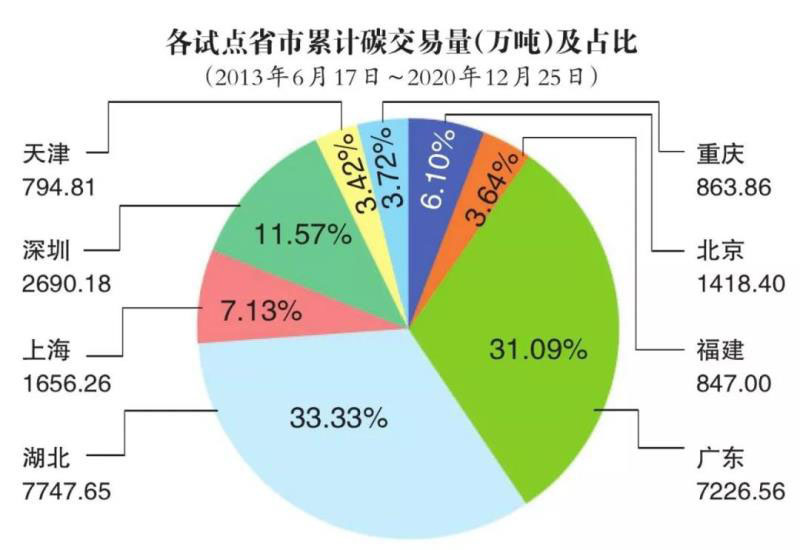 2011年,國家發(fā)展改革委設(shè)立碳配額交易試點(diǎn)區(qū)域,北京、上海、深圳、重慶、廣東、天津、湖北7個(gè)省市成為試點(diǎn)區(qū)域。其中深圳的碳排放交易所在2013年率先建立,其余交易試點(diǎn)也在2014年年中之前相繼建立。2016年,福建碳市場啟動,并發(fā)布了《福建省碳排放權(quán)交易市場調(diào)節(jié)實(shí)施細(xì)則(試行)》。2017年12月,《全國碳排放權(quán)交易市場建設(shè)方案(發(fā)電行業(yè))》發(fā)布。