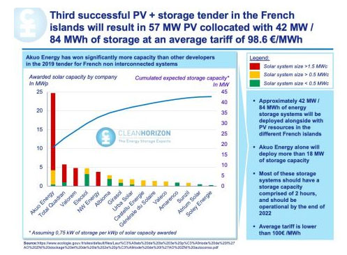 法國2020年度招標(biāo)的結(jié)果已經(jīng)公布,這些招標(biāo)項目將在法國的一些海外島嶼部署可再生能源發(fā)電設(shè)施和儲能系統(tǒng)??偣彩谟枇?7MW太陽能+儲能項目的合同,其招標(biāo)規(guī)則要求配套部署的電池儲能系統(tǒng)裝機(jī)容量不低于太陽能發(fā)電設(shè)施裝機(jī)容量一半。