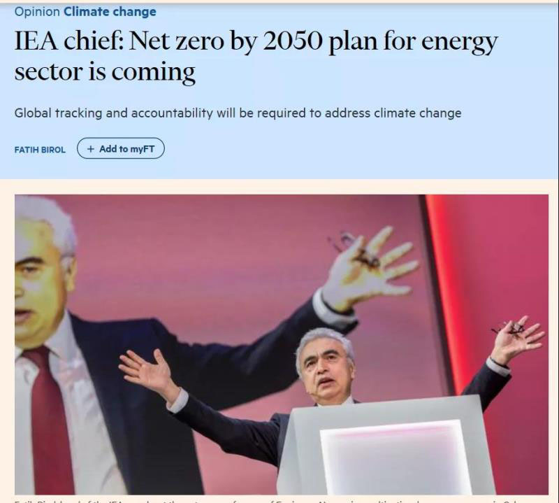 中國儲(chǔ)能網(wǎng)“國際能源署署長法提赫·比羅爾在英國《金融時(shí)報(bào)》發(fā)表文章,題目是:Global tracking and accountability will be required to address climate change(應(yīng)對(duì)氣候變化需要全球跟蹤和問責(zé))