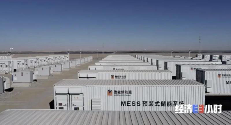 就在光熱塔的東北方,與它相呼應的是國內(nèi)首個電源側(cè)接入的百兆瓦時級,集裝箱式電化學儲能電站。