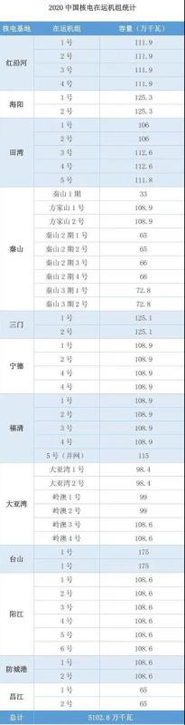 中電聯(lián)的最新數(shù)據(jù)是,截止2020年11月,在總共21.2億千瓦的裝機(jī)中,核電裝機(jī)占比大約為2.4%。