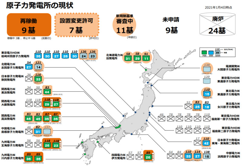 受福島核事故影響的日本還未徹底拋棄核電。福島核事故之后,日本一度停止了所有核電機(jī)組運(yùn)營,但在能源需求之下,核電在緩慢恢復(fù),從2015年開始,日本至今有9個(gè)核電機(jī)組獲批重啟,有18個(gè)核電機(jī)組在重啟運(yùn)行的審查過程之中,但目前在運(yùn)的機(jī)組只有3臺(tái)。目前,重啟的堆型都是壓水堆,與福島核事故電站采用相同技術(shù)路線的沸水堆還未有機(jī)組獲批重啟。